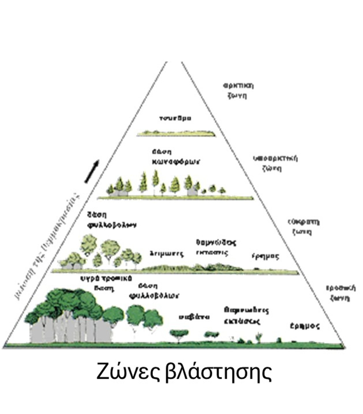 Ο ομιλητής αφού προσδιόρισε με την χρήση διαγράμματος, τις ζώνες βλάστησης ανέφερε στην συνέχεια τα διάφορα είδη δένδρων που φύονται σε κάθε ζώνη και την σημασία τους στην ισορροπία του οικοσυστήματος.